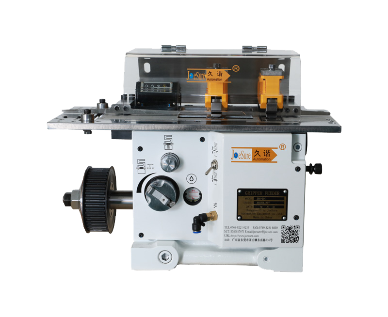 JSG系列是通過凸輪驅(qū)動(dòng),具有可調(diào)性的挾式送料。采用一個(gè)弧面凸輪和三個(gè)板型凸輪的獨(dú)特設(shè)計(jì)方式,實(shí)現(xiàn)了高速平穩(wěn)送料。為了使材料均勻受力,避免產(chǎn)生壓痕和擦傷,對挾具進(jìn)行了特別加工,可以輸送易碰傷的電鍍材料、軟質(zhì)材料以及不規(guī)則形狀的材料等。特別適合于電子產(chǎn)業(yè)中的材料輸送。